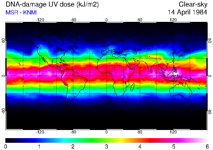 Daily UV dose:   erythemal  |  vitamin-D  |  DNA-damage