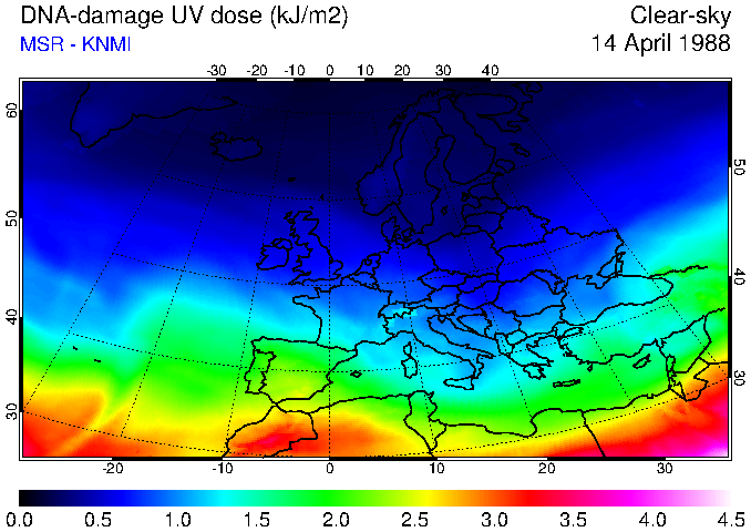 DNA-damage UV dose of 14 April 1988