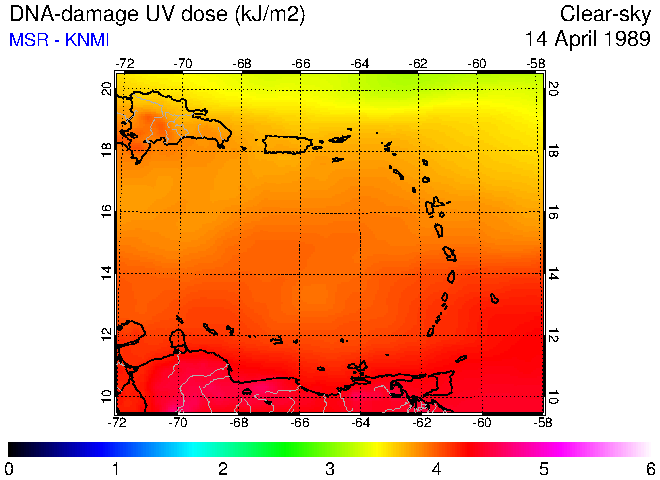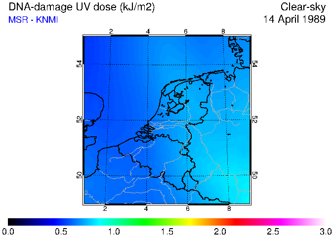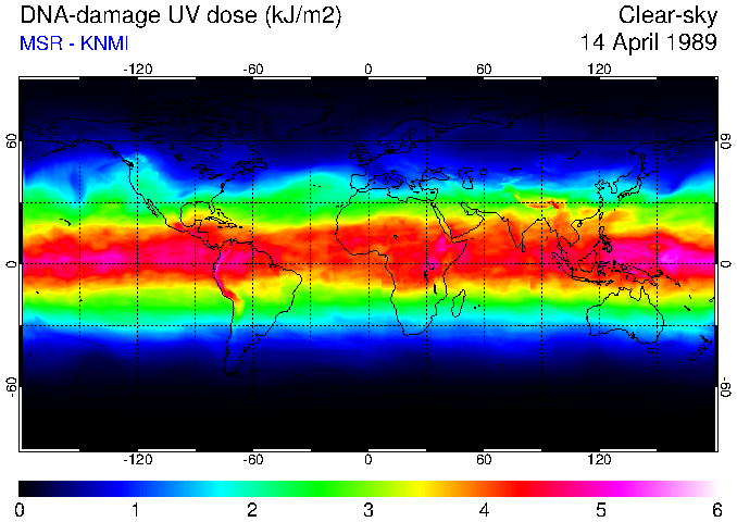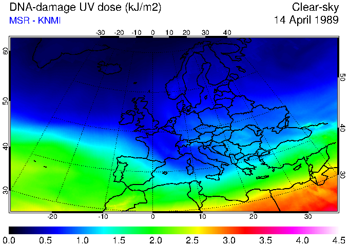 DNA-damage UV dose of 14 April 1989