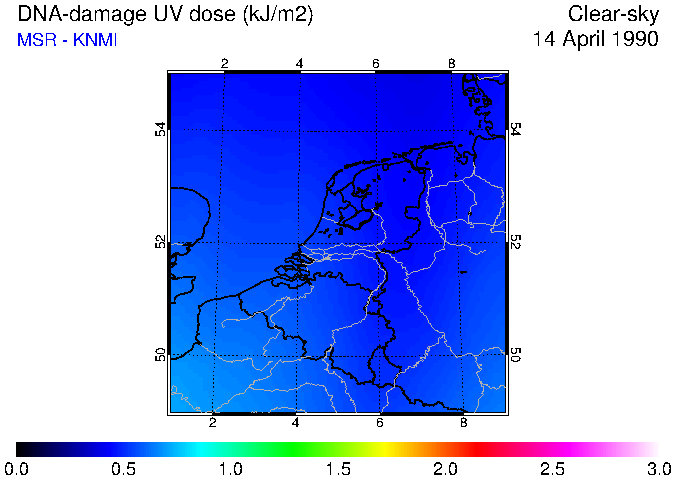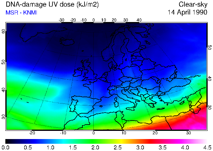 DNA-damage UV dose of 14 April 1990