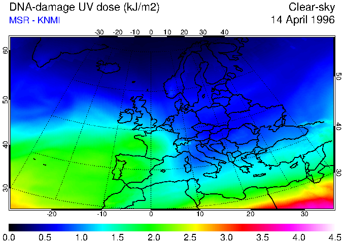 DNA-damage UV dose of 14 April 1996