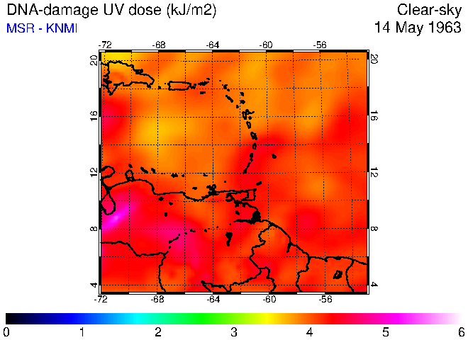 Clear-sky UV index:   erythemal