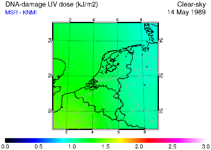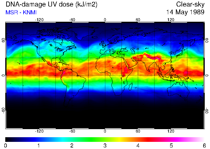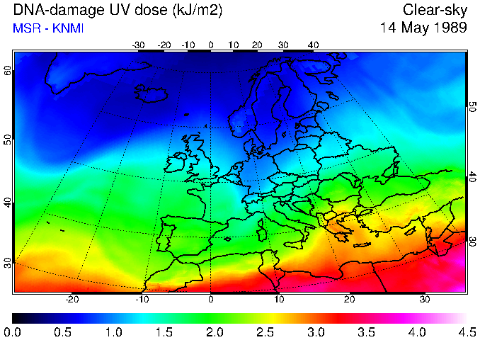 DNA-damage UV dose of 14 May 1989