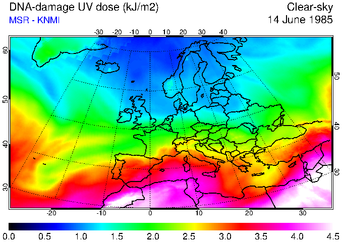 DNA-damage UV dose of 14 June 1985
