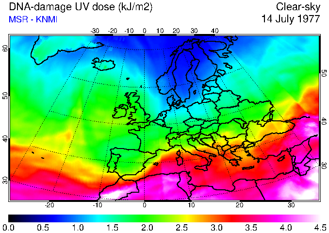 DNA-damage UV dose of 14 July 1977