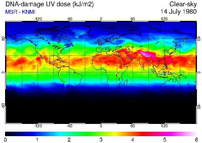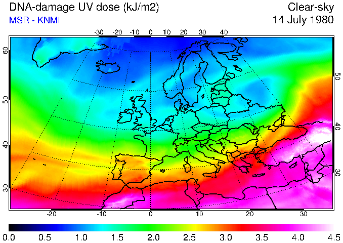 DNA-damage UV dose of 14 July 1980