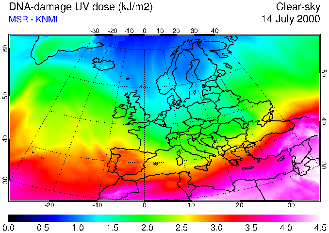 DNA-damage UV dose of 14 July 2000