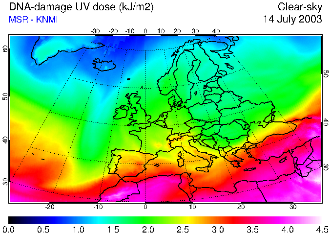 DNA-damage UV dose of 14 July 2003