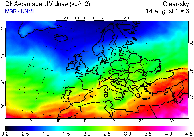 DNA-damage UV dose of 14 August 1966