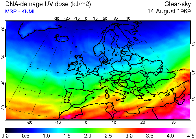 DNA-damage UV dose of 14 August 1969