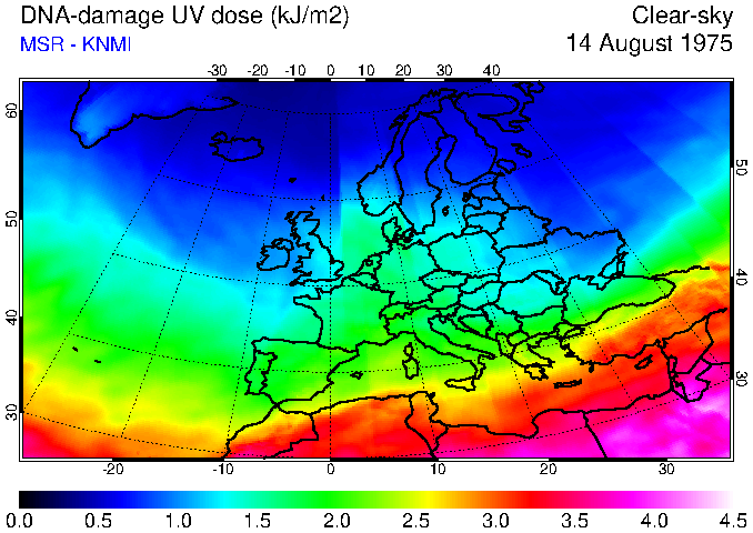 DNA-damage UV dose of 14 August 1975