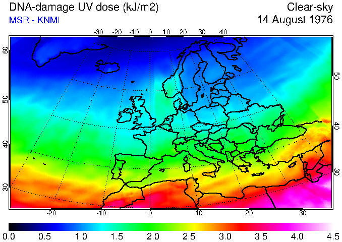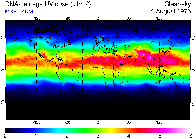 DNA-damage UV dose of 14 August 1976
