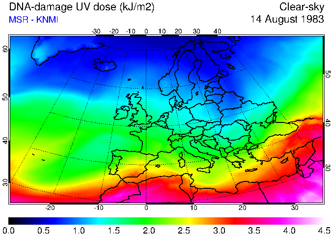 DNA-damage UV dose of 14 August 1983