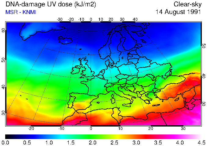 DNA-damage UV dose of 14 August 1991