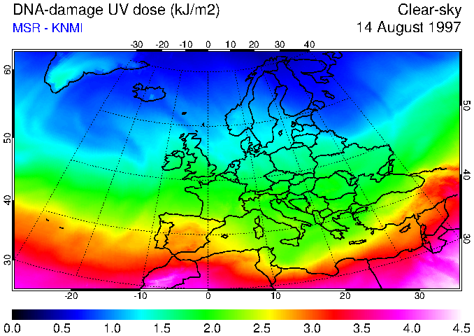 DNA-damage UV dose of 14 August 1997