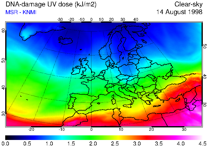 DNA-damage UV dose of 14 August 1998