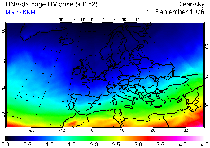 DNA-damage UV dose of 14 September 1976
