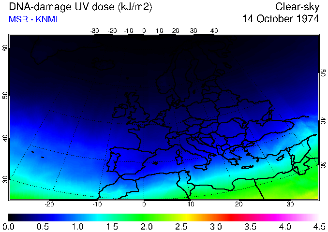 DNA-damage UV dose of 14 October 1974