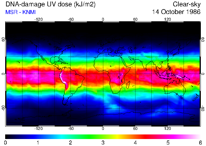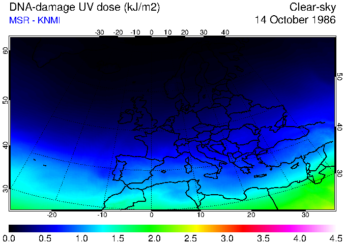 DNA-damage UV dose of 14 October 1986