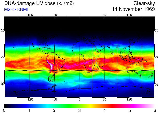 Daily UV dose:   erythemal  |  vitamin-D  |  DNA-damage