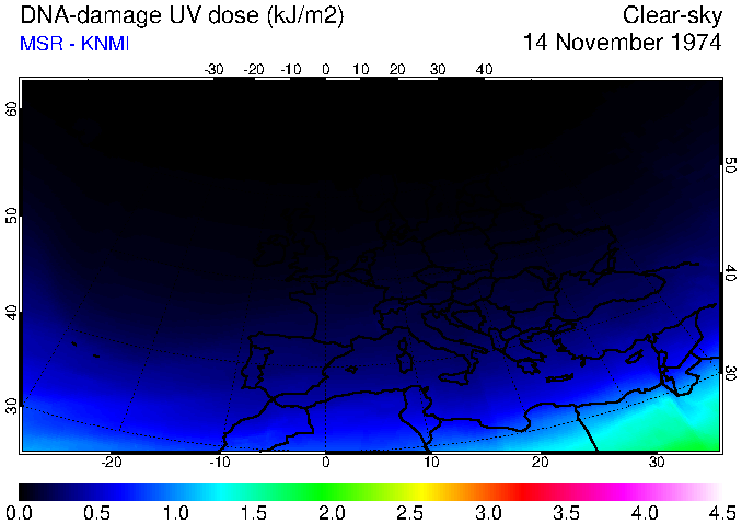 DNA-damage UV dose of 14 November 1974