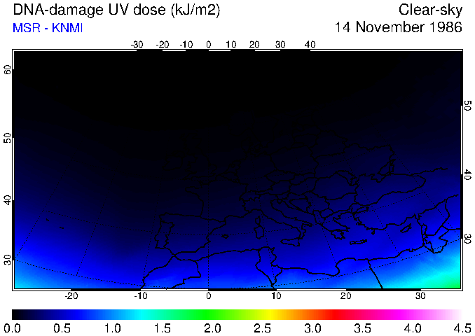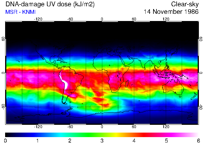 DNA-damage UV dose of 14 November 1986