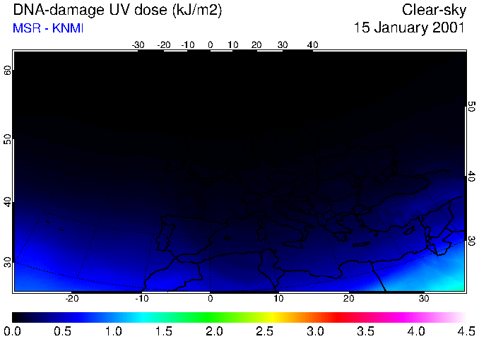 DNA-damage UV dose of 15 January 2001