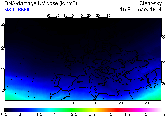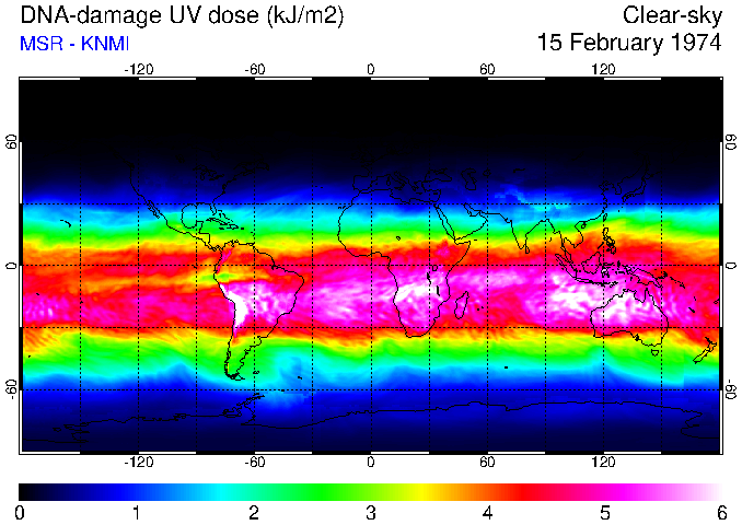 DNA-damage UV dose of 15 February 1974