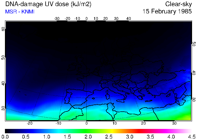 DNA-damage UV dose of 15 February 1985