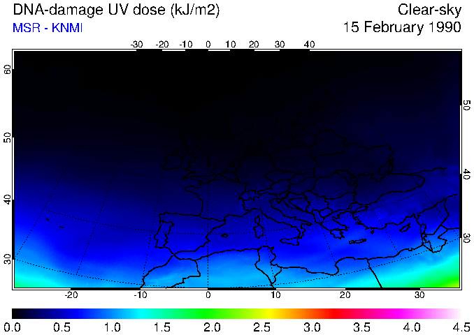 DNA-damage UV dose of 15 February 1990