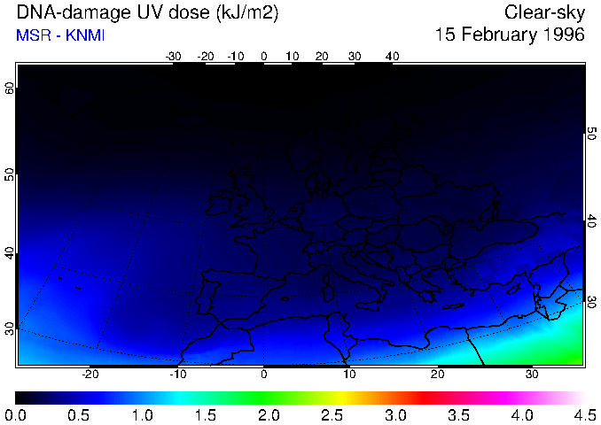 DNA-damage UV dose of 15 February 1996