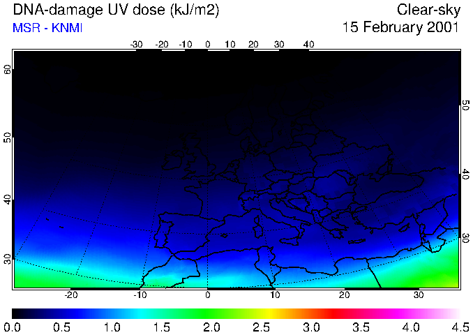 DNA-damage UV dose of 15 February 2001