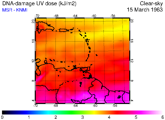 Clear-sky UV index:   erythemal
