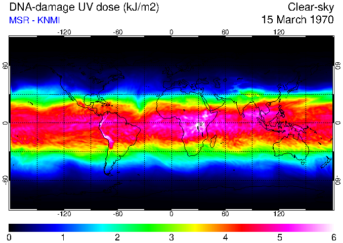 Daily UV dose:   erythemal  |  vitamin-D  |  DNA-damage