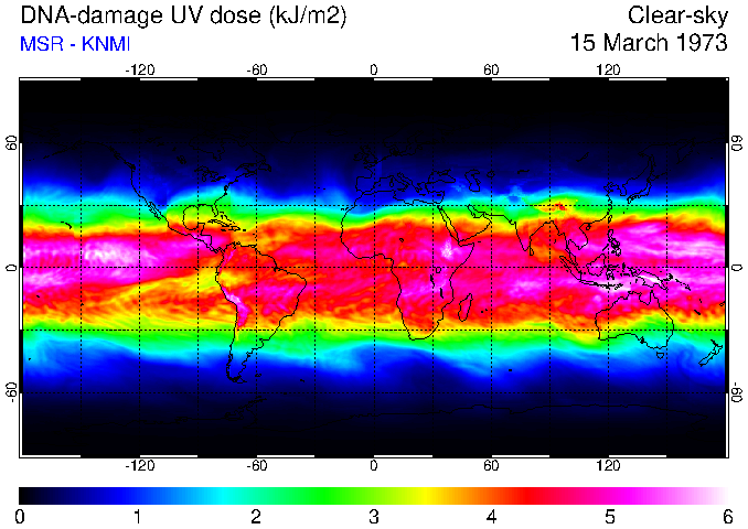 Daily UV dose:   erythemal  |  vitamin-D  |  DNA-damage