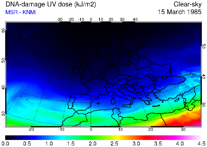 DNA-damage UV dose of 15 March 1985
