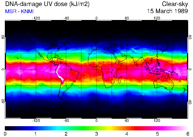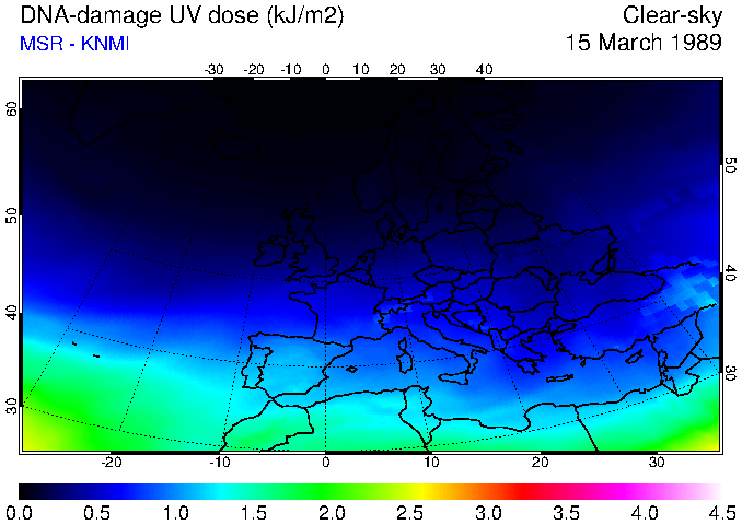 DNA-damage UV dose of 15 March 1989
