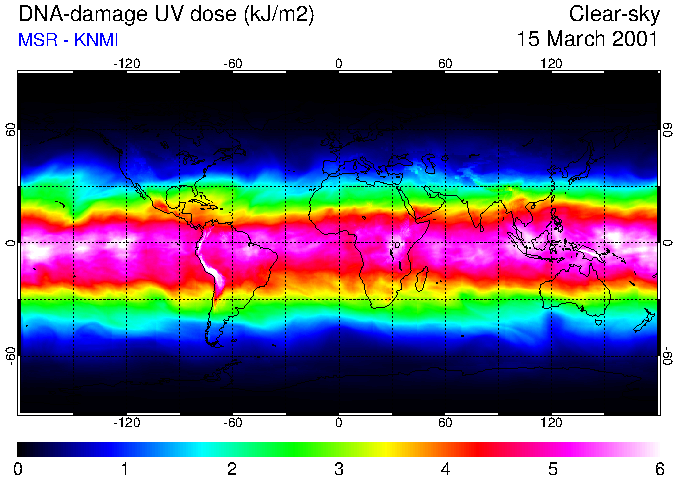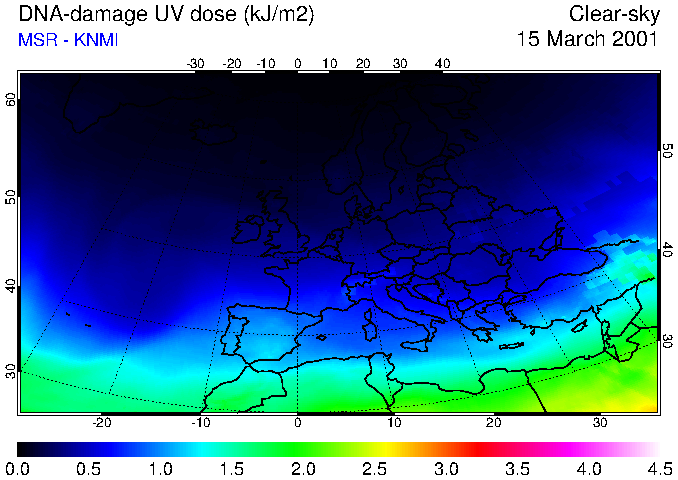 DNA-damage UV dose of 15 March 2001