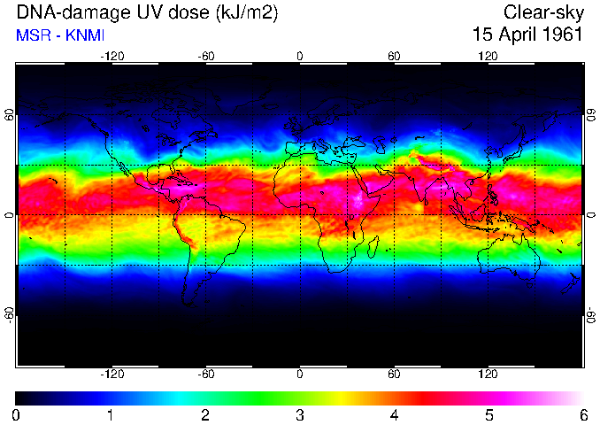Daily UV dose:   erythemal  |  vitamin-D  |  DNA-damage
