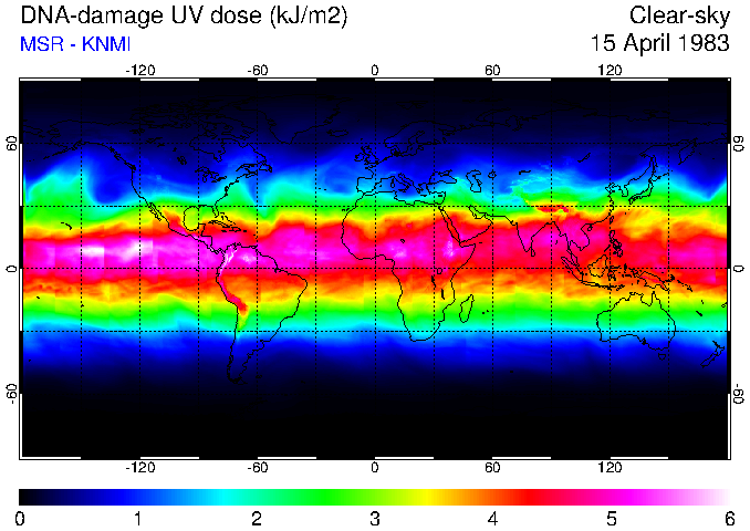 Daily UV dose:   erythemal  |  vitamin-D  |  DNA-damage
