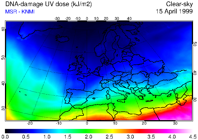 DNA-damage UV dose of 15 April 1999