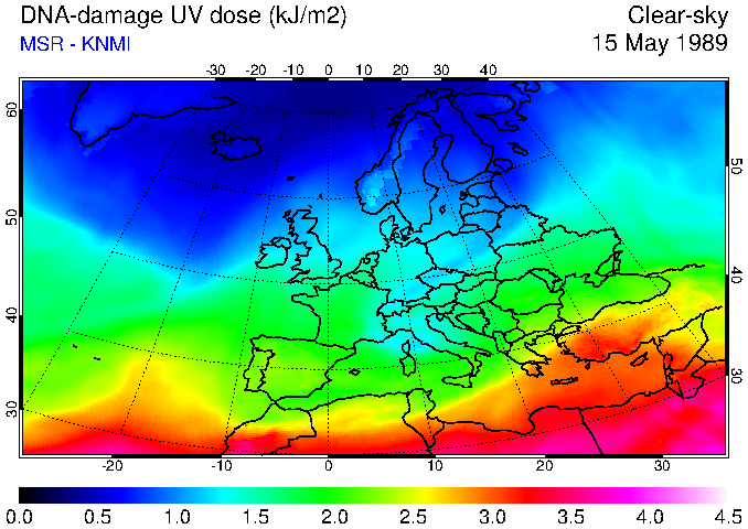 DNA-damage UV dose of 15 May 1989