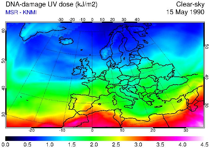 DNA-damage UV dose of 15 May 1990