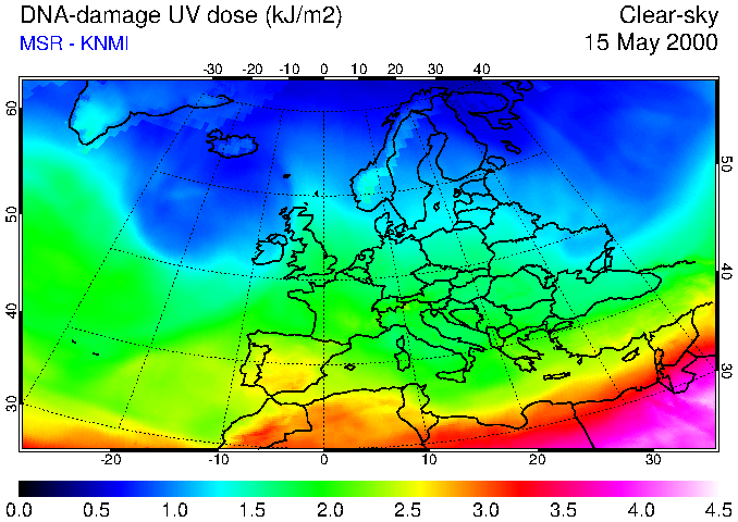 DNA-damage UV dose of 15 May 2000