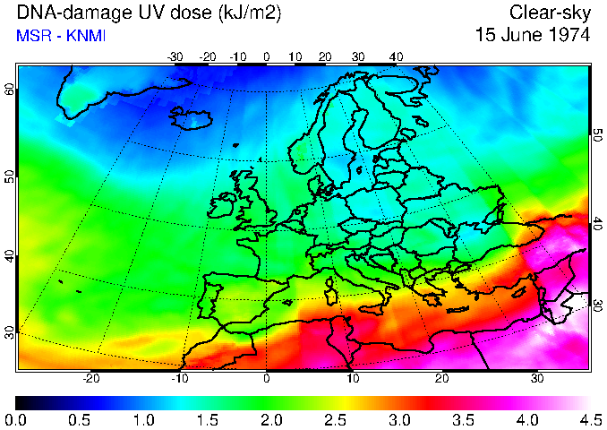 DNA-damage UV dose of 15 June 1974