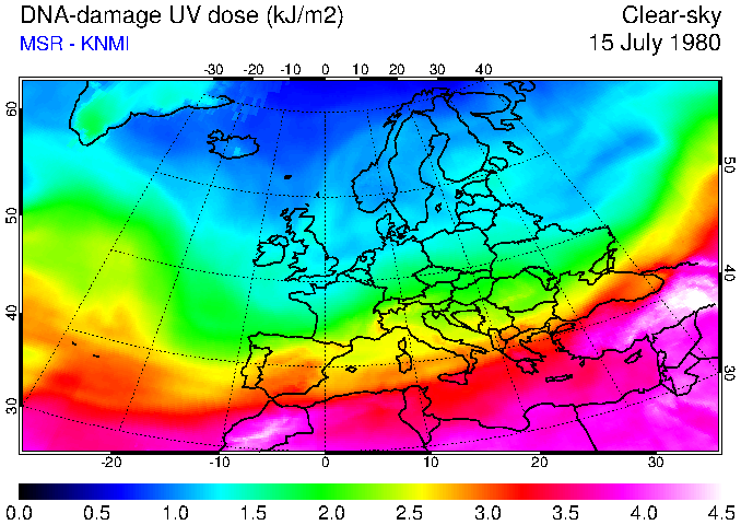 DNA-damage UV dose of 15 July 1980