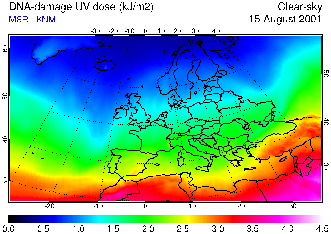 DNA-damage UV dose of 15 August 2001