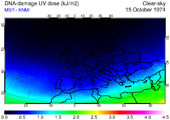 DNA-damage UV dose of 15 October 1974