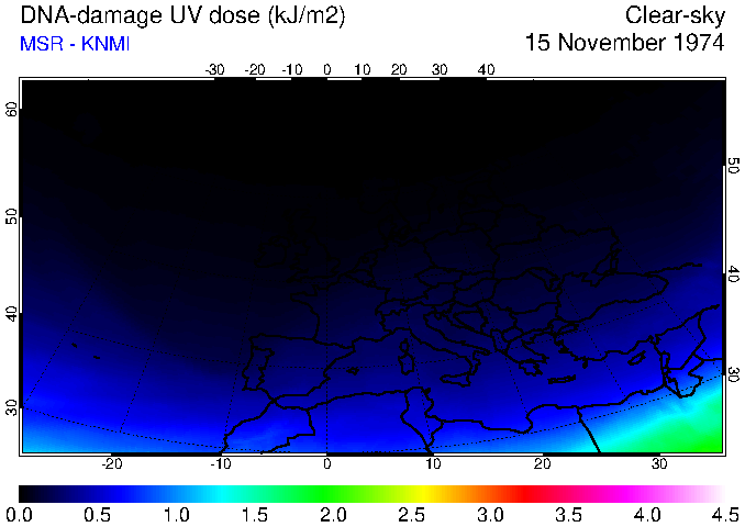 DNA-damage UV dose of 15 November 1974