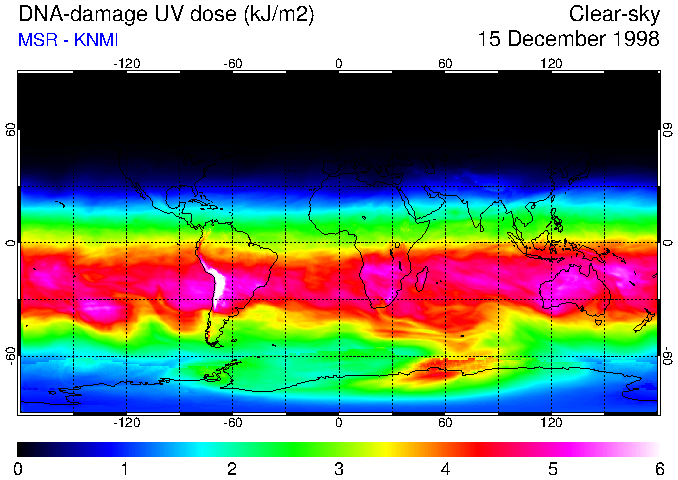 DNA-damage UV dose of 15 December 1998